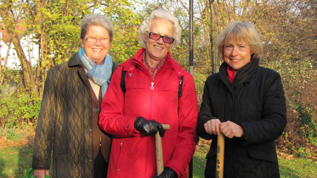 „Möge unsere Arbeit noch lange Früchte tragen“ haben sich wohl die ehemaligen Vorstandsmitglieder des SkF Gütersloh gedacht und als Abschiedsgeschenk und zur Erinnerung einen Apfelbaum im Garten des Franziskus-Hauses gepflanzt. Margarete Potthoff, Sylvia Hild und Elisabeth Otten hoffen, dass schon bald zum Beispiel die Kinder aus den Eltern-Kind-Gruppen die ersten Äpfel pflücken können. Die neue Vorsitzende Dr. Ursula Pantenburg bedankte sich im Namen von Vorstand und Mitarbeiterinnen für dieses ganz besondere und symbolträchtige Geschenk.