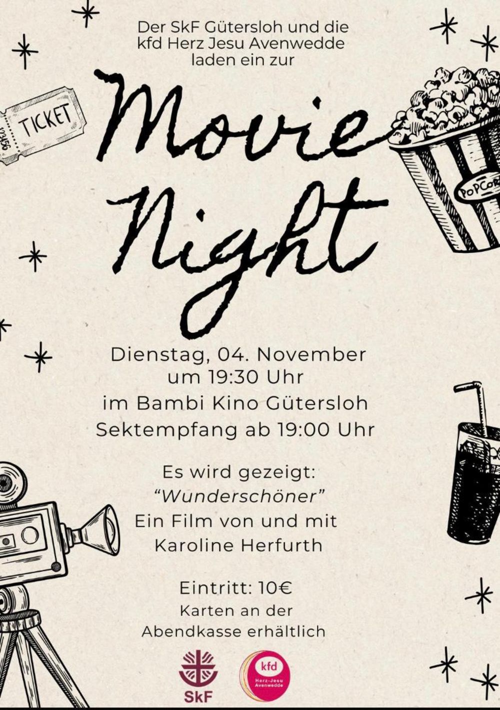 Der SkF und die kfd Avenwedde Herz Jesu laden herzlich ein zur gemeinsamen Movie Night am Dienstag, 4. November.