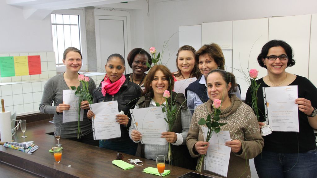 Den Hauhalt führen: Einen 20-wöchigen Kursus „Haushaltsführerschein“ absolvierten jetzt Nadja Haßmann (v. l.), Wilma Sousa, Stella Namutebi, Samira Georg, Isabell Mulcahy, Naile Gezer und Februnye Bilk, angeleitet von Antonia Tigges (hinten 2. v. r.).