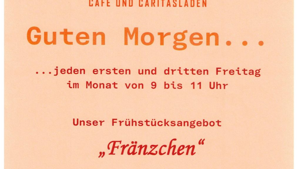 Guten Morgen – leckere Brötchen, frischer Kaffee und Franzbrötchen: Der Name "Fränzchen" ist Programm. Frühstücken Sie im Café Franz an jeden ersten und dritten Freitag im Monat… Wir freuen uns auf Sie!