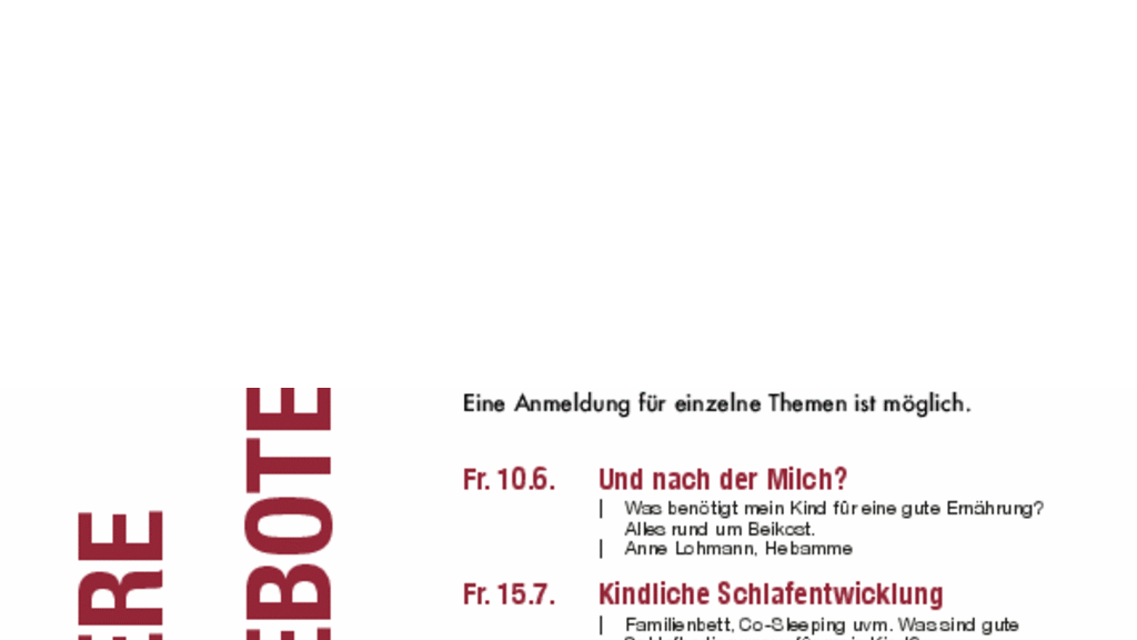 Eine Anmeldung für einzelne Themen ist möglich. Anmeldung und weitere Infos bei Delia Spexard unter d.spexard@skf-guetersloh.de