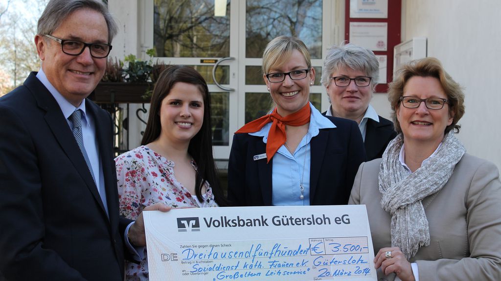 „Wir finden, dass das Projekt „Leih-Großeltern“ des Sozialdienstes katholischer Frauen e.V. Gütersloh ein sinnvolles bürgerliches und ehrenamtliches Engagement ist“, erläuterte Thomas Sterthoff (Vorstandsvorsitzender der Volksbank Stiftung) bei der Übergabe der Spende im Franziskus-Haus in Gütersloh, Unter den Ulmen, die finanzielle Unterstützung der Volksbank-Stiftung.