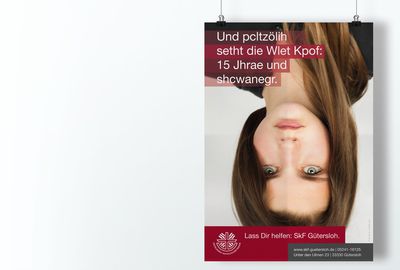 Aus Anlass des 90-jährigen Bestehens des Sozialdienstes katholischer Frauen Gütersloh e.V. schenkt die Kommunikations- und Designagentur gestaltende dem Verein eine Imagekampagne. Mit Hilfe dieser Kampagne sollen die Hilfsangebote des SkF einer breiteren Öffentlichkeit in Gütersloh bekannt gemacht werden.