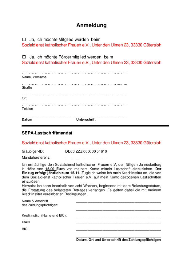 unseren Aufnahmeantrag herunter und senden diesen ausgefüllt an unsere Adresse.